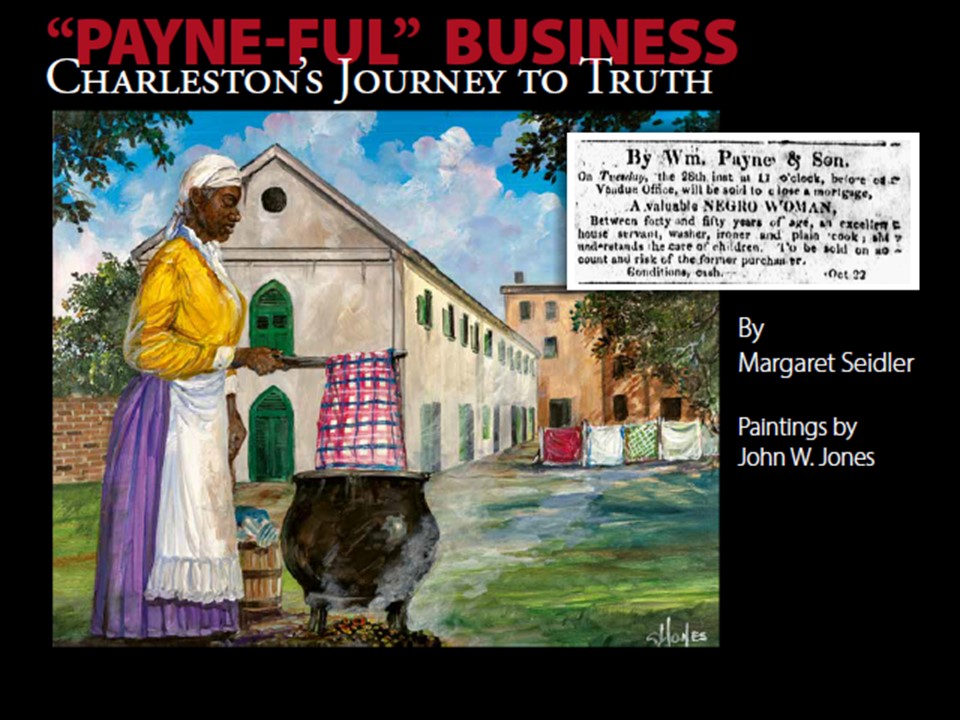 “Payne-ful” Business: Charleston's Journey to Truth follows Margaret Seidler's mission to learn and process her family's genealogical past. Using extensive research and personal experience, Seidler discusses the realities of Charleston's racial history while highlighting the historians, journalists, and community members who work to reconcile those truths. The book features authentic, historic slave advertisements brought to life by vivid paintings by artist John W. Jones that uncover the humanity hidden beneath the detached advertisement descriptions. Seidler hopes that acknowledging a more complete truth about our past will motivate us to bridge today’s racial divide.
