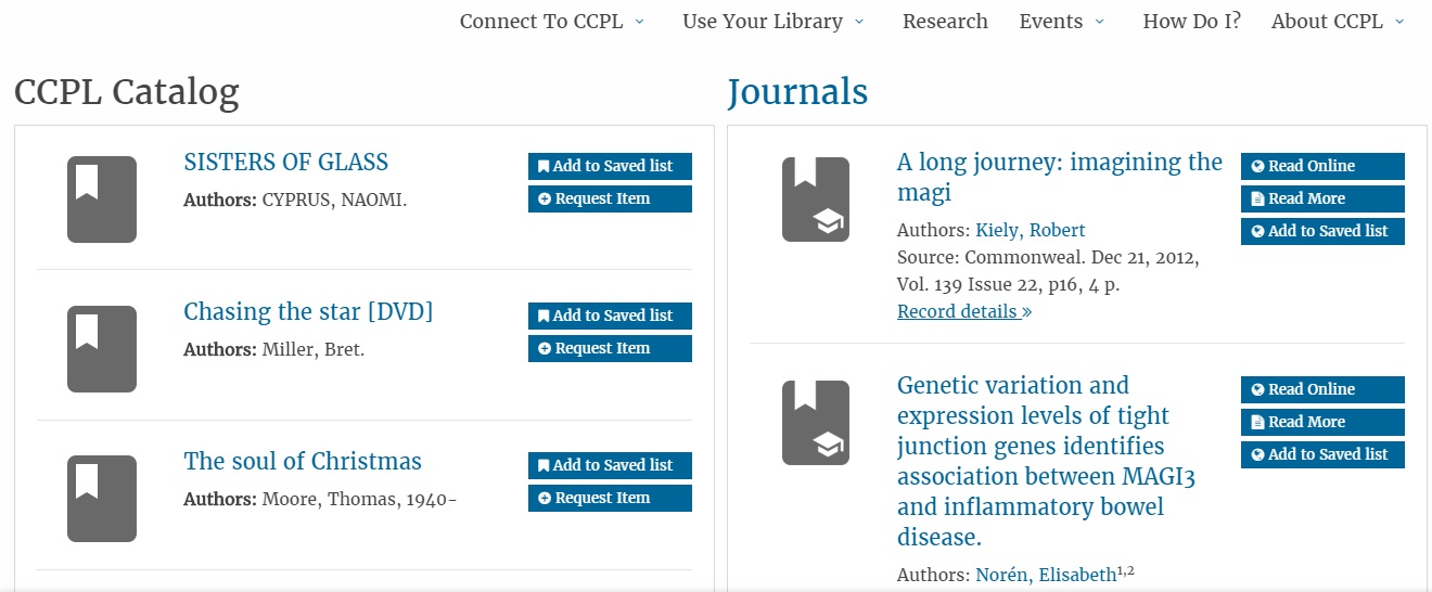 Speaking of social media, we've made it much easier for you to see the things we share on our social platforms. Scroll down the homepage, and you'll find feeds of our Twitter and Facebook profiles. And at the bottom of every page there are links to Facebook, Twitter, Instagram and YouTube. Give us a follow, and stay up to date on everything happening at CCPL!