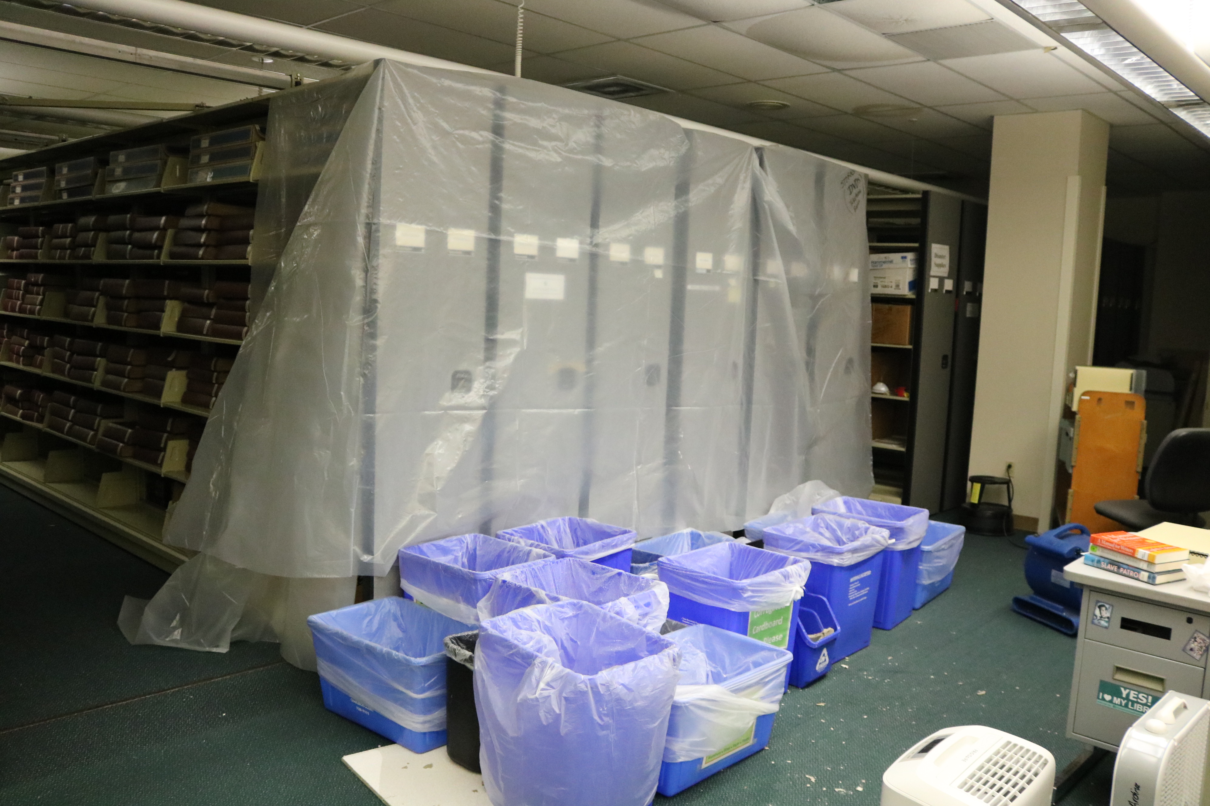 That leak happened in late August, destroying ceiling tiles and dumping gallons of water into the Charleston Archive and on its many book shelves. Brian Fahey and Melissa Mabry from the Catholic Diocese of Charleston's Office of Archives and Records Management volunteered their time to separate the books and start the process of drying them. Some of the books, roughly four dozen of them, were only a little damp and could be air dried. Another 18 books were so damp they had to be wrapped in plastic wrap and frozen.